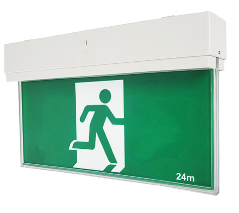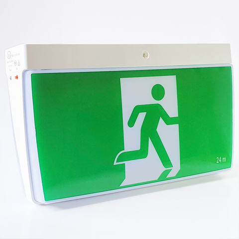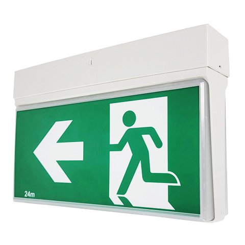 AS2293 Normes LifFePO4 JUMBO LED Panneau de signalisation de sortie, 40m de distance de visualisation monté au plafond Double face Running Man LED Signe de sortie
